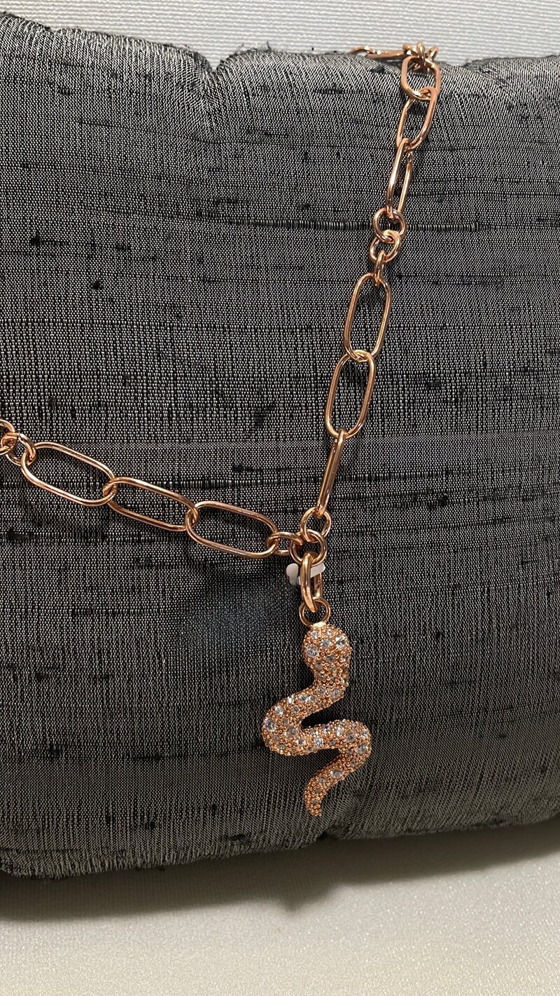 collana in argento rosa con ciondolo serpente argento rosa con zirconimade in Italy.
